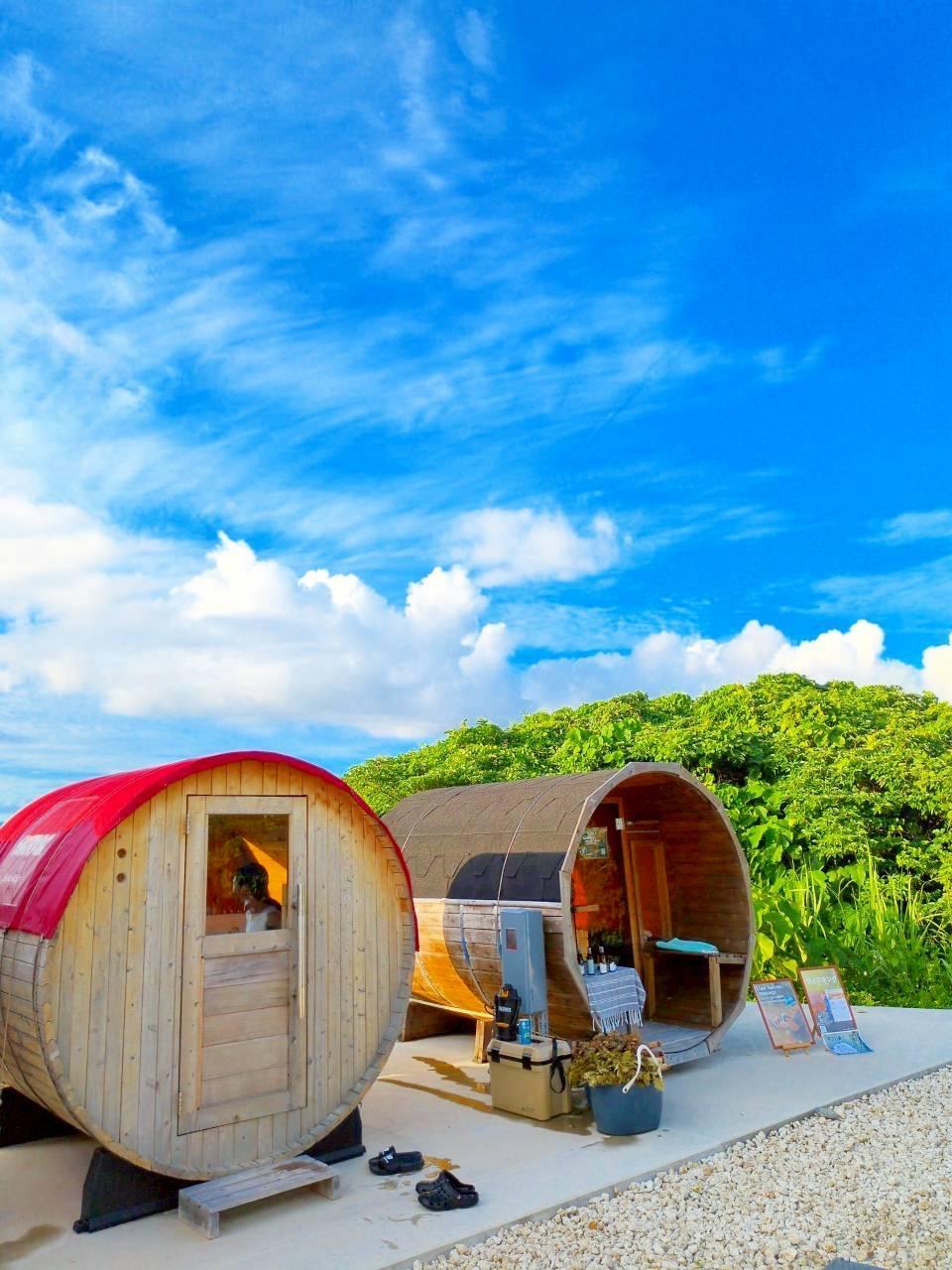 海を望むふたつのバレルサウナで、